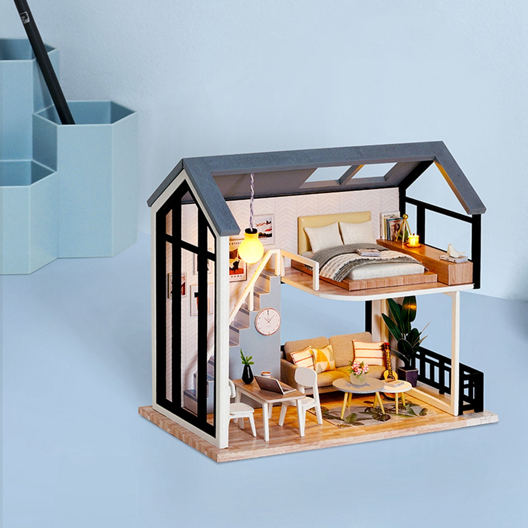 Bring creativity and joy to kids with this Nordic Style DIY Wooden Dollhouse Kit, designed for fun, imaginative pretend play. Perfect for young creators, this miniature duplex model provides an engaging activity that combines crafting and playtime.