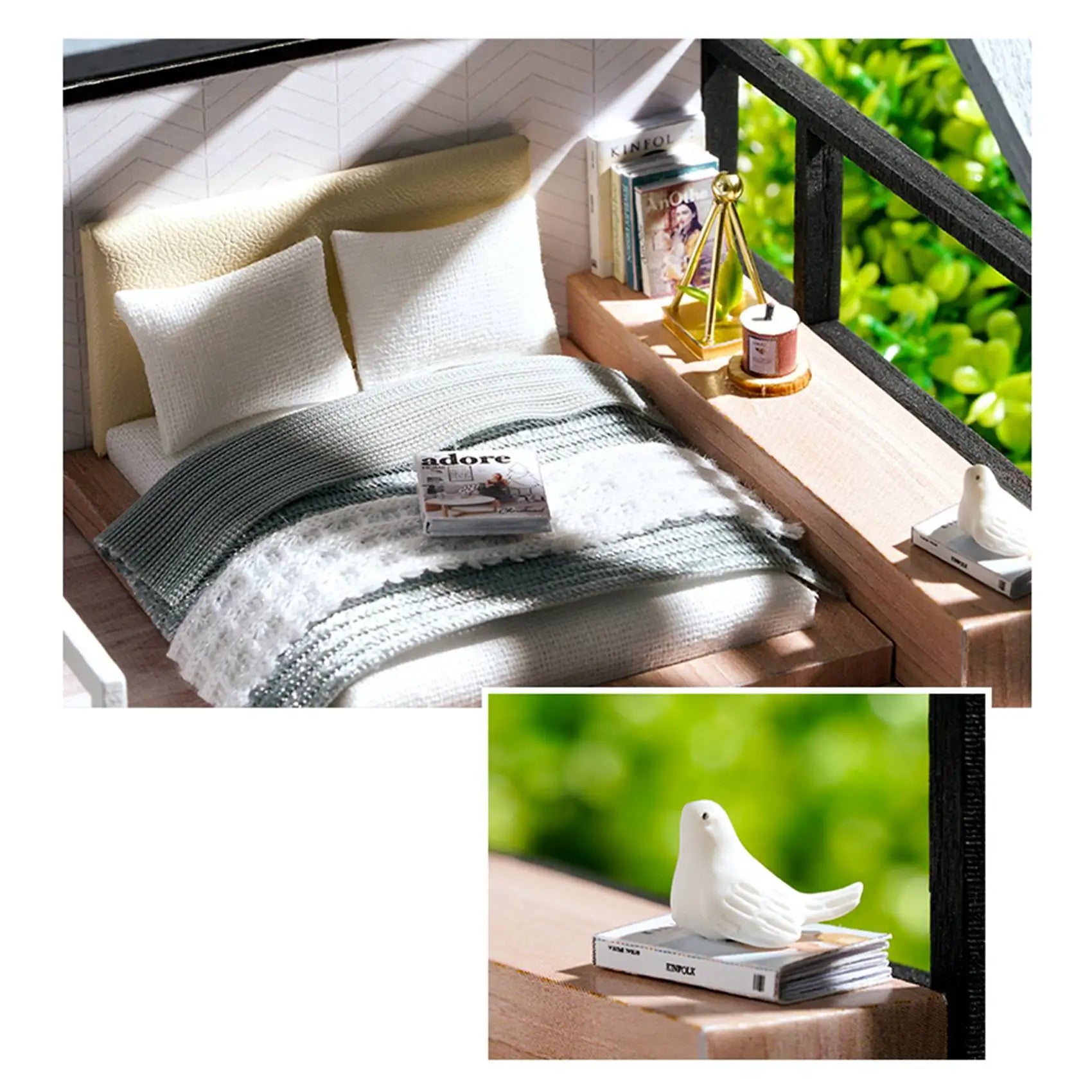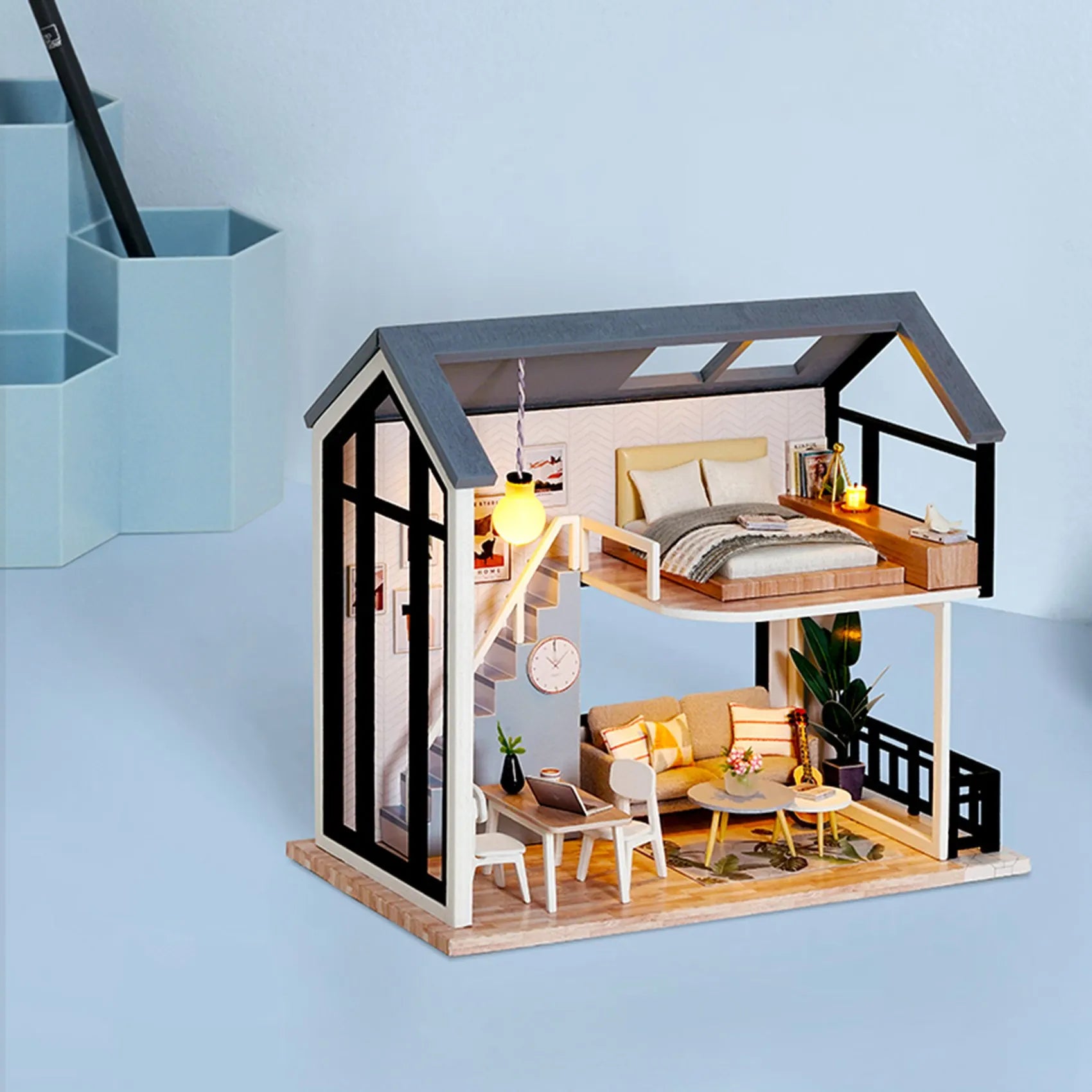 Nordic Style DIY Wooden Dollhouse Kit – Miniature Duplex Model with Furniture for Kids' Pretend Play Assembly