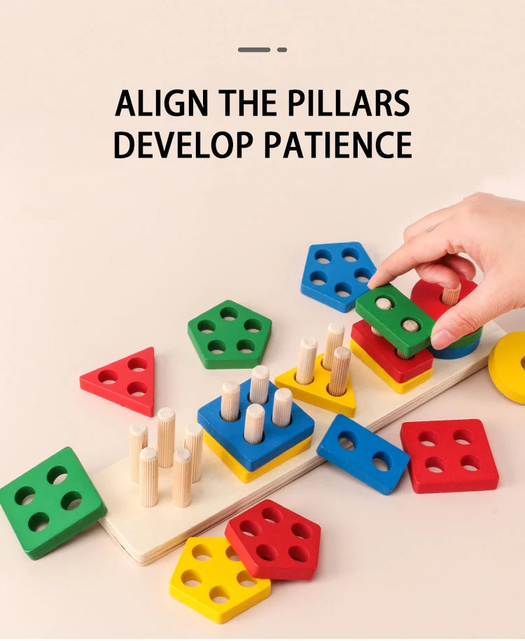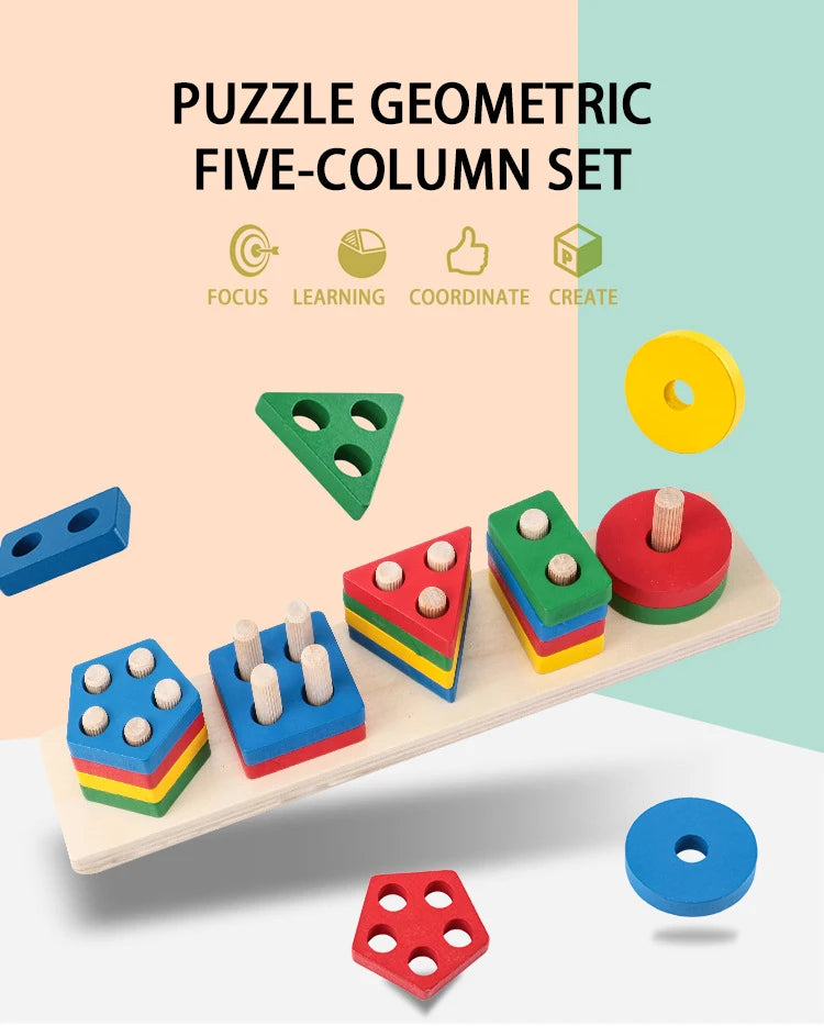 Montessori Wooden Shape Puzzle - Geometric Stacking Toy for Early Learning