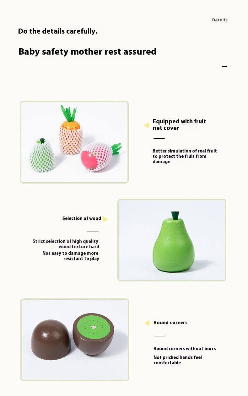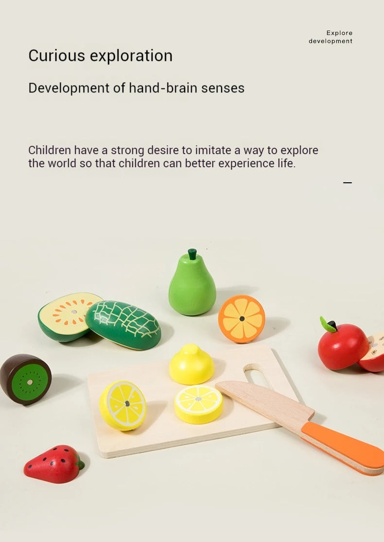 Wooden Fruit Cutting Stimulation Toy Set - Pretend Play Kitchen for Kids